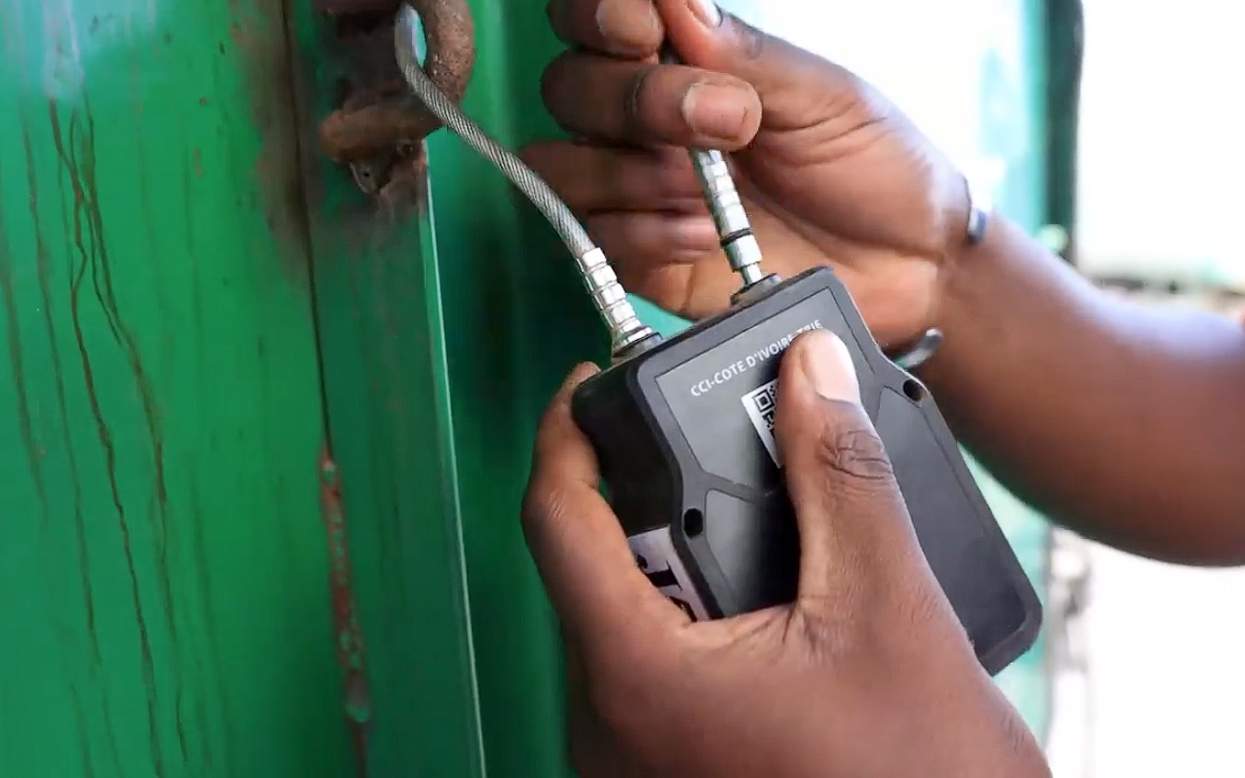 1.Origin Sealing: At the Port of Abidjan, a GPS Tracker Lock is affixed, and its ID is digitally bound to the transit document .